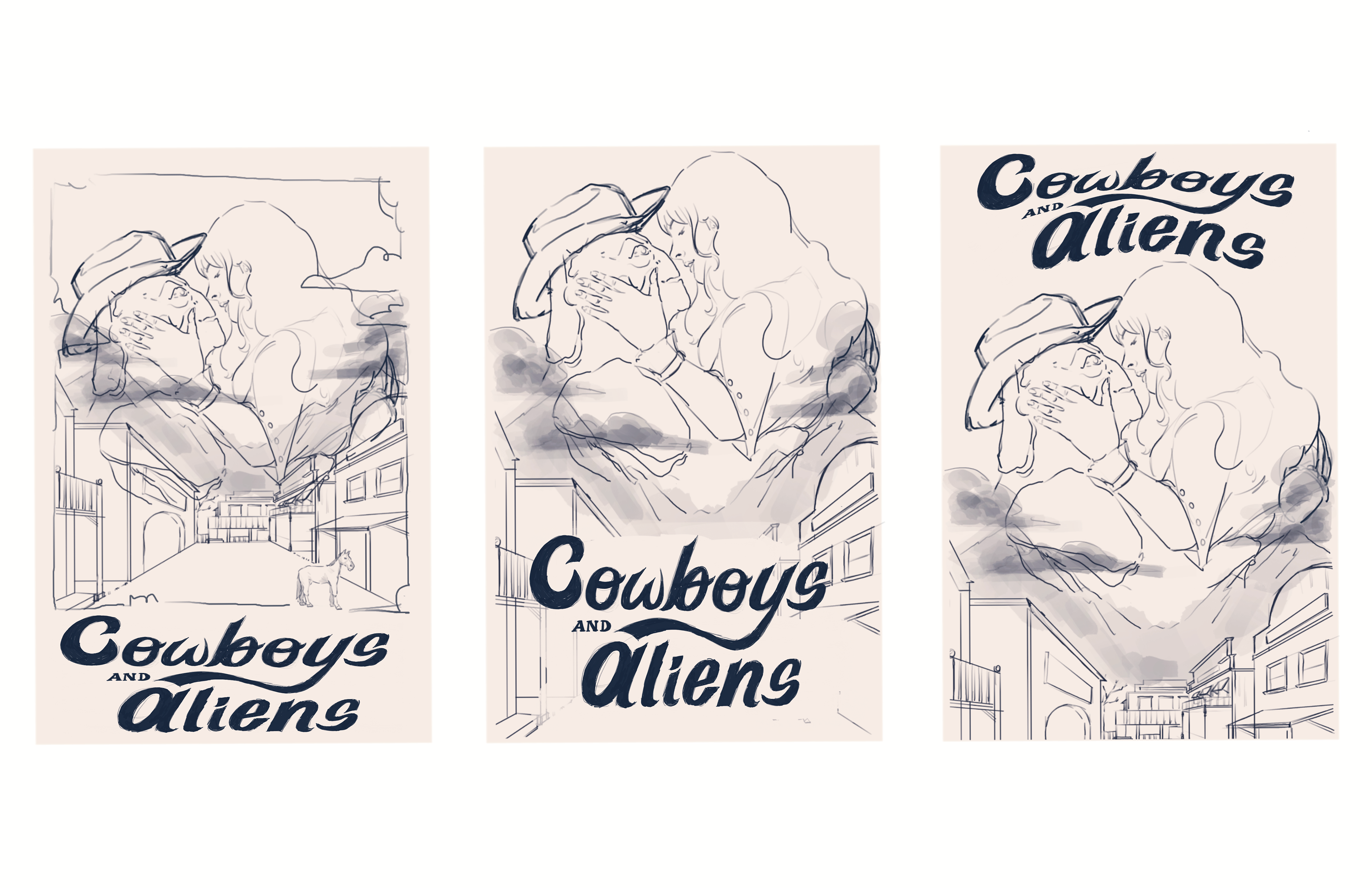 a movie poster redesign for Cowboys and Aliens. switching the genre from western sci-fi to romance.