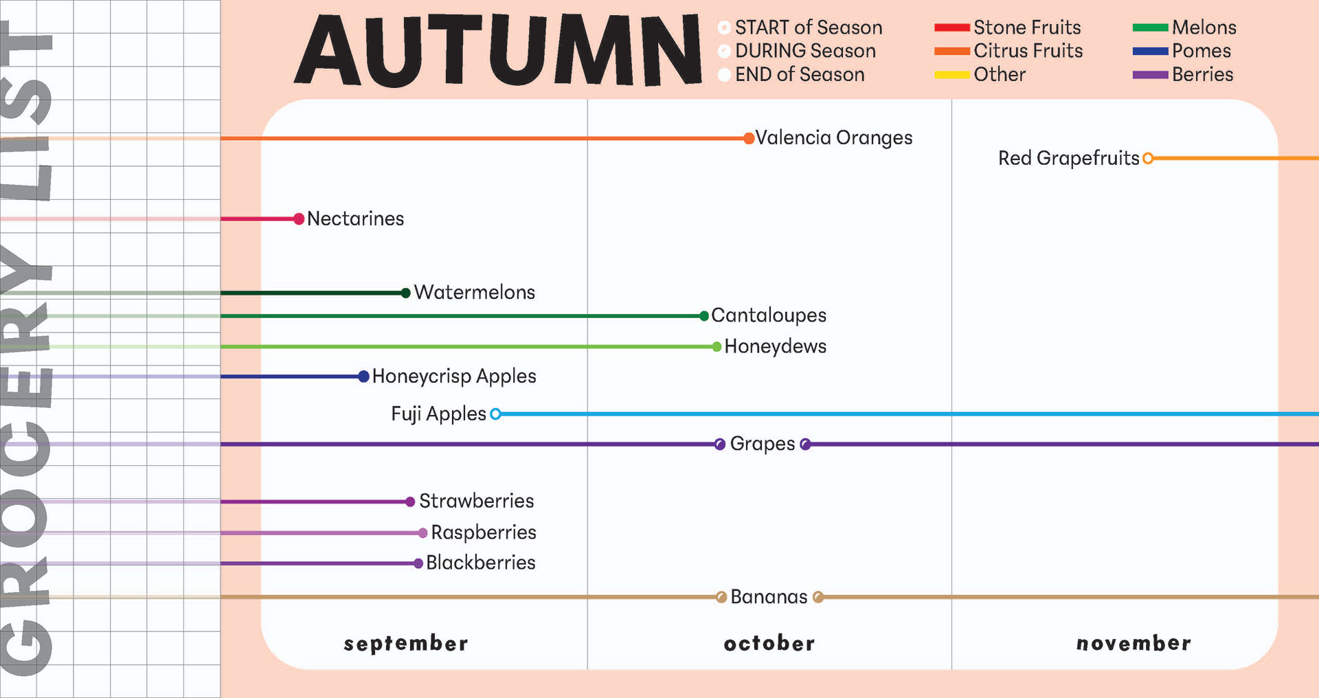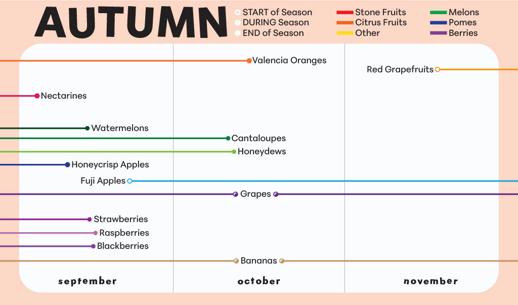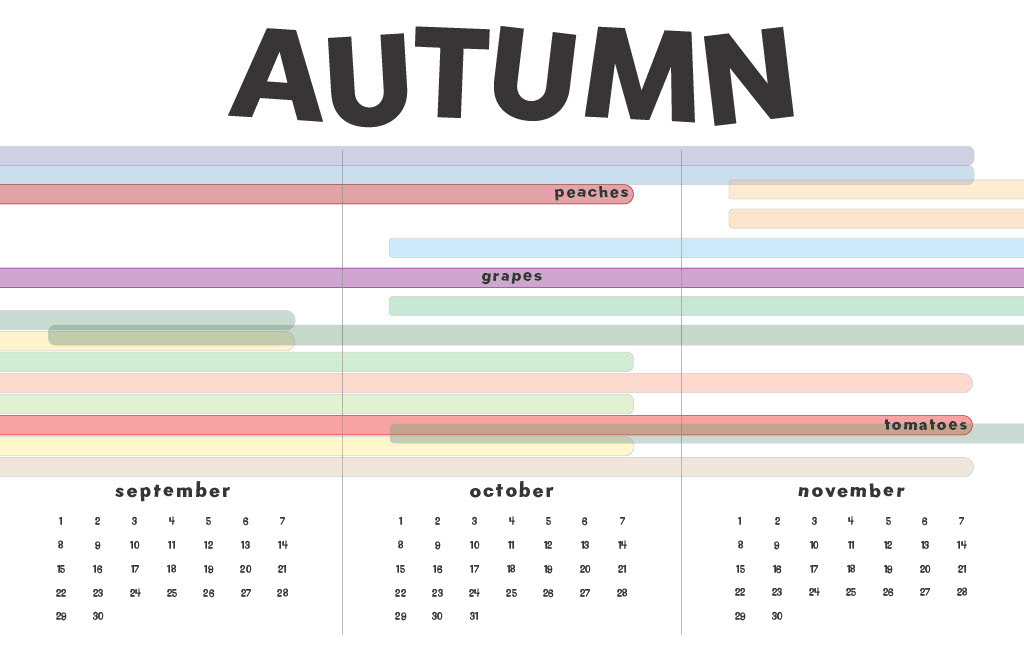 an editorial take on a classic calendar that tracks time through the different harvest times of fruit.