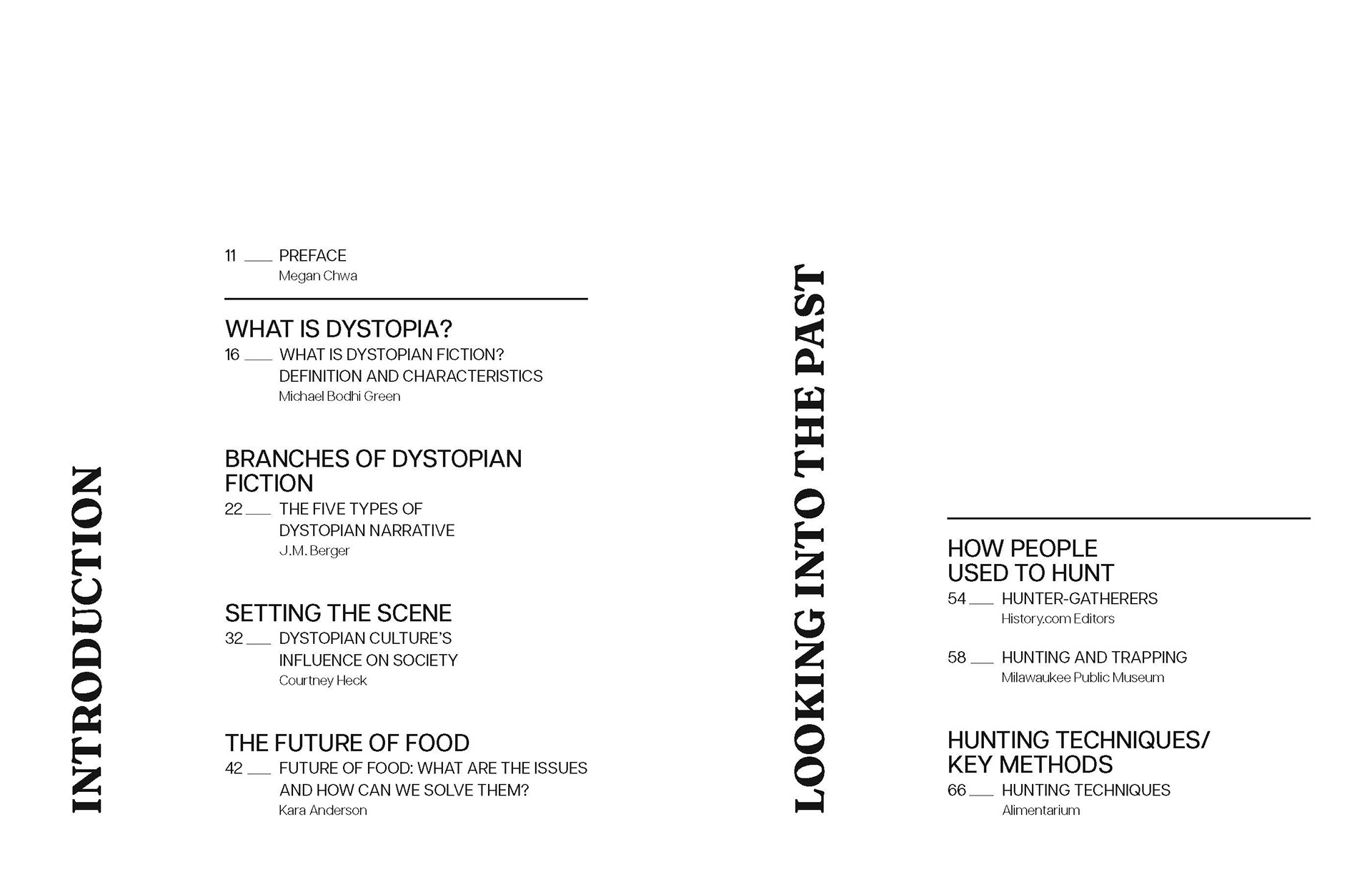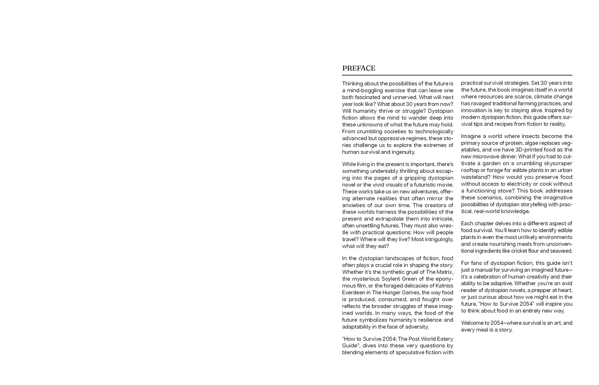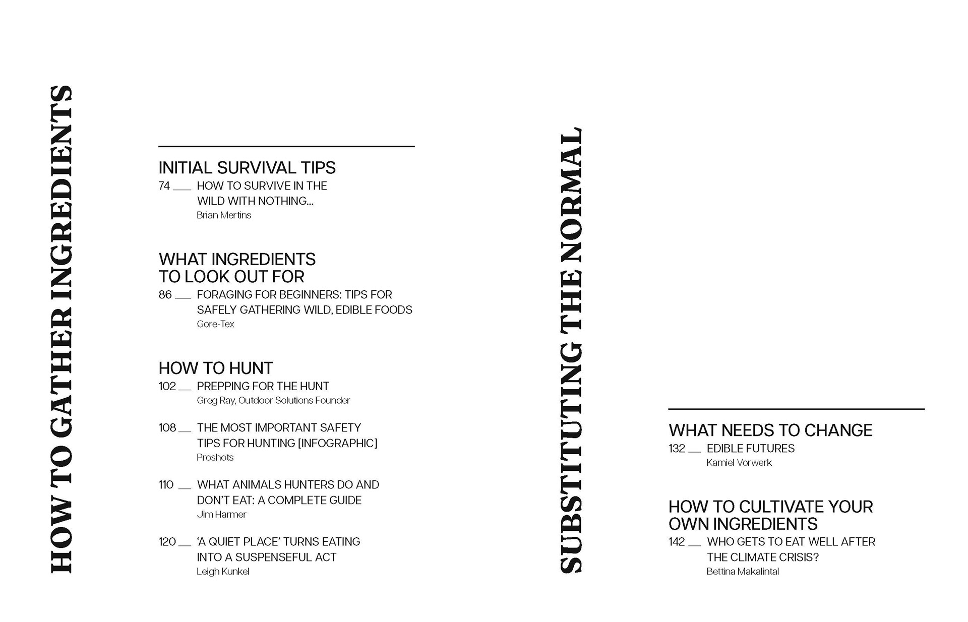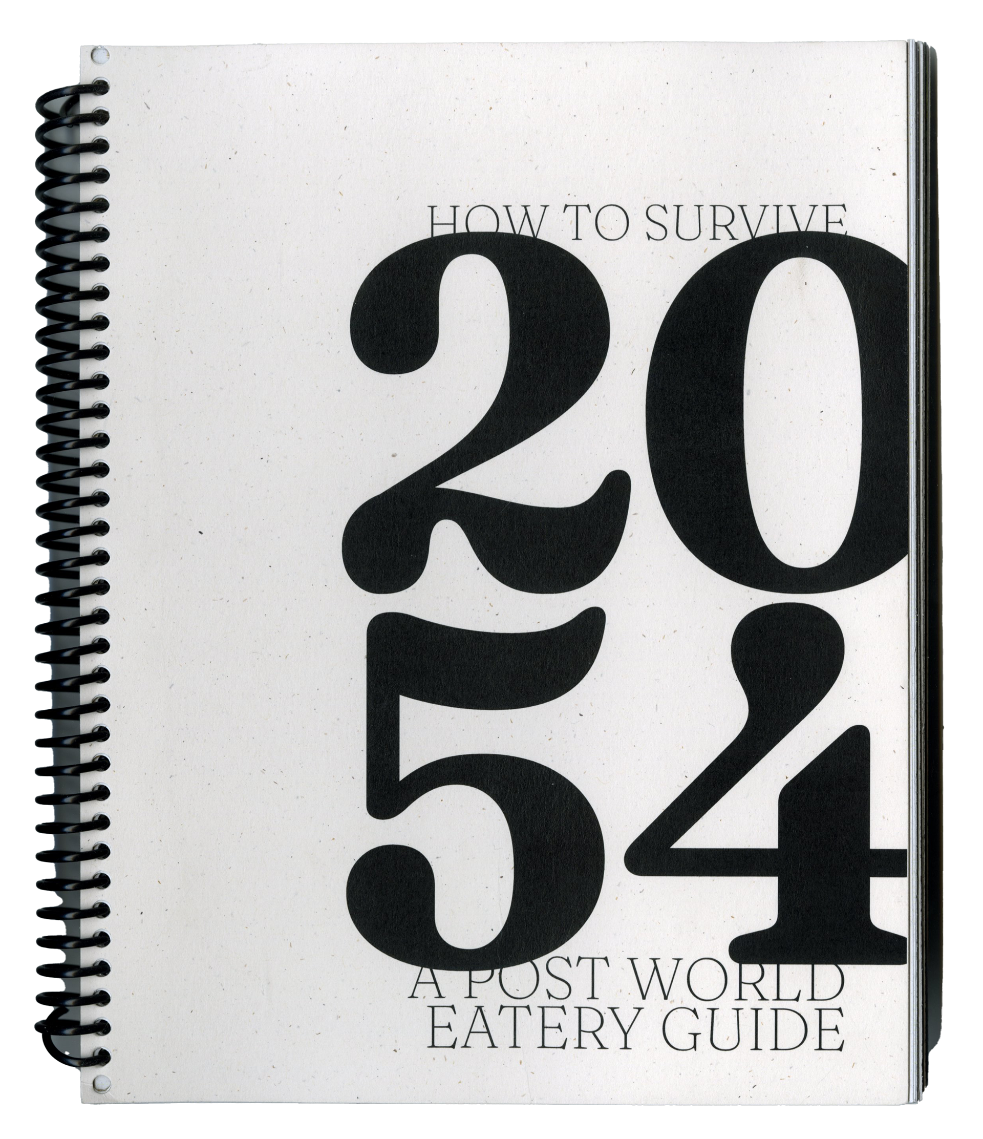 a dystopian survival guidebook covering various survival tips and hacks focused on the future of food. exploring the use of a typographic system within a large-scale production.