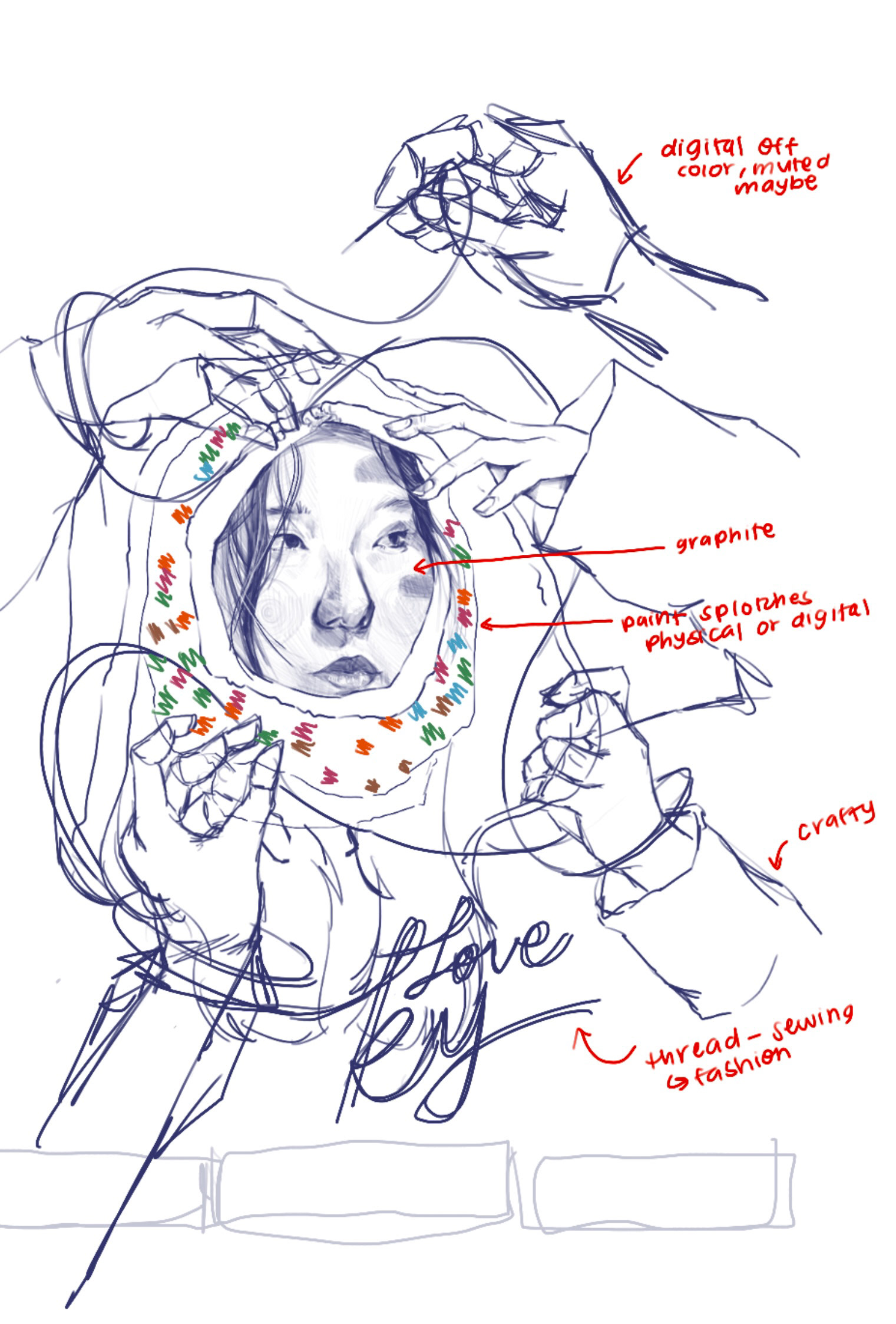 an editorial portrait focusing on how Ky expresses her creativity with a mix of media and high contrast.